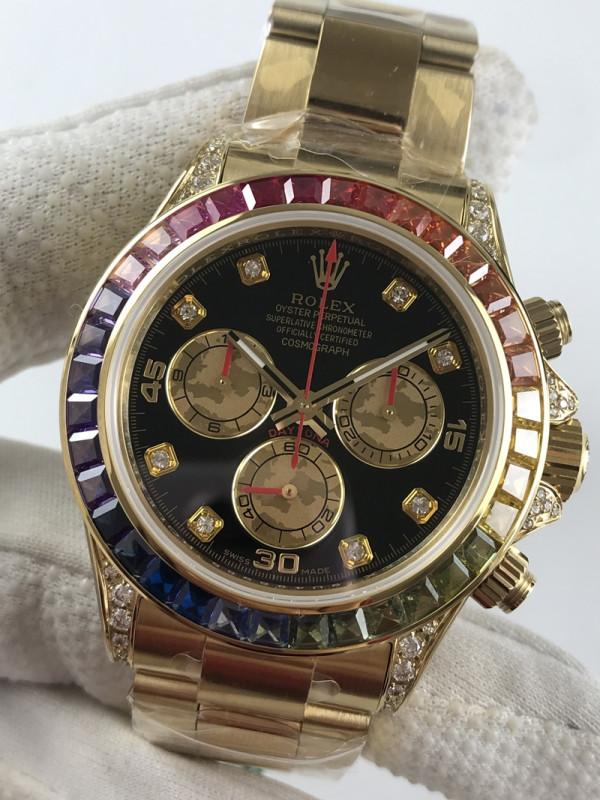 NO.65/JH공장 롤렉스 데이토나 옐로우골드 레인보우 바게티베젤 블랙다이얼